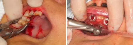 • 局麻下,拔除松动牙,放置手术导板,