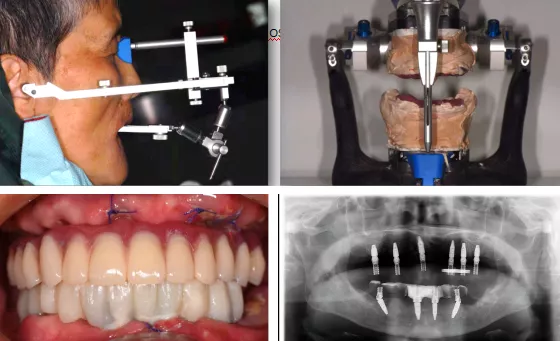 • 使用全可调式𬌗架进行数据位点转移,术后制作临时修复义齿