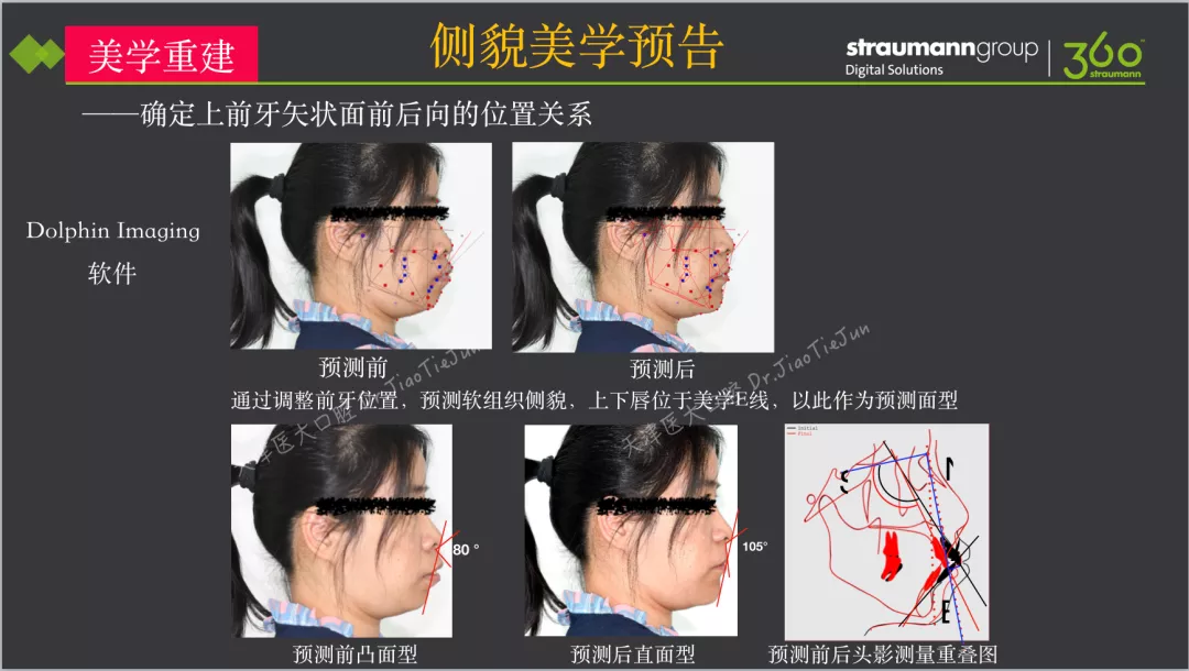 1) 美学重建的难点:正侧貌美学预告及上前牙三维位置的确定;