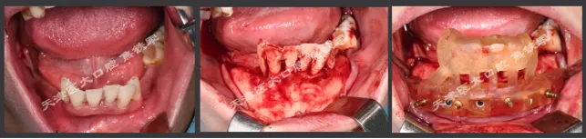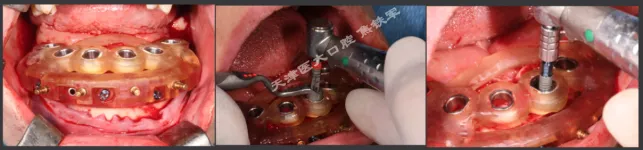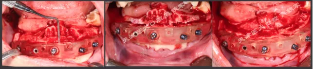 · 翻瓣,利用松牙固定后的余留牙支持连接在一起的牙支持导板和基部导板,使骨支持的基部导板就位于骨面。