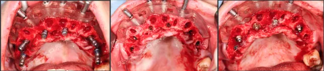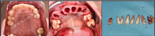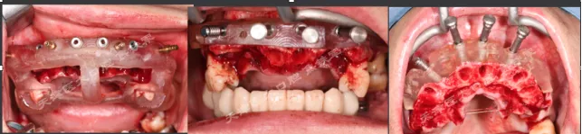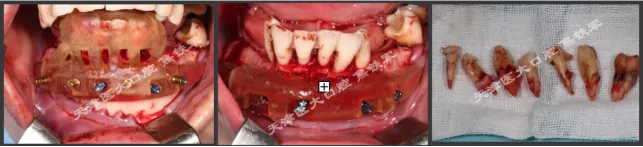 · 并用固位钉固定,拆除牙支持式导板,拔除余留牙。