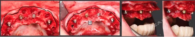· 种植体植入位置偏腭侧,唇侧骨量过于丰满,上颌骨前突,去骨修整骨边缘。