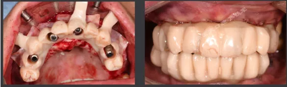 · 最终修复体采用士卓曼原厂切削纯钛桥架+氧化锆整体桥。