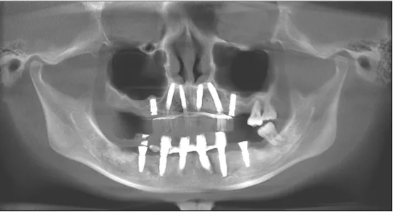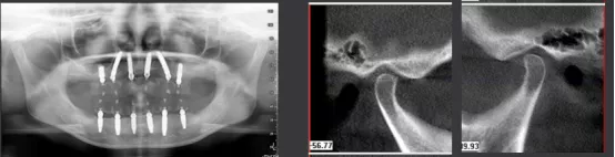 · X线片显示,种植体周骨稳定性、关节髁突位置评估均无异常。
