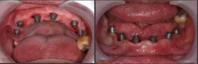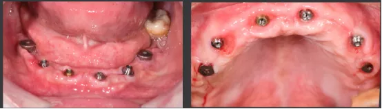 · 上下颌计划行即刻种植,各植入六颗straumann钛锆种植体并行即刻修复。