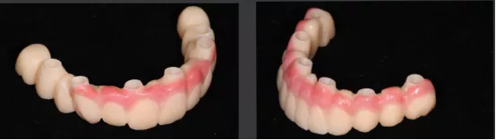 · 数字化设计第二幅临时修复体,PMM切削,上下颌各修复12个单位的修复体,16.26单端桥设计