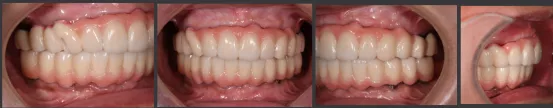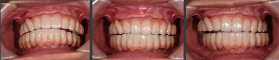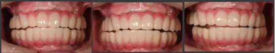 · 修复体红白美学满意,前伸侧方咬合均无干扰,前牙前突问题解决,指导患者清洁。