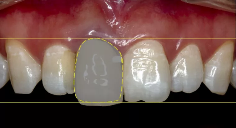 · 翻转21牙作为11牙理想修复体,获取11牙理想龈缘位置。