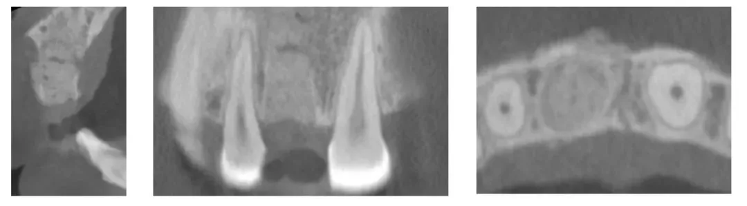 · GBR半年后复查CBCT,显示垂直及水平向骨量充足,骨弓轮廓基本无塌陷。