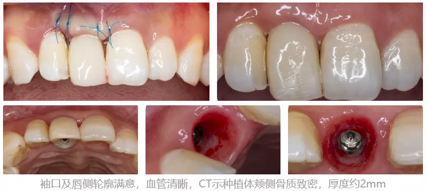 · 术后CBCT显示种植体方向位置良好,唇舌侧骨壁完整。