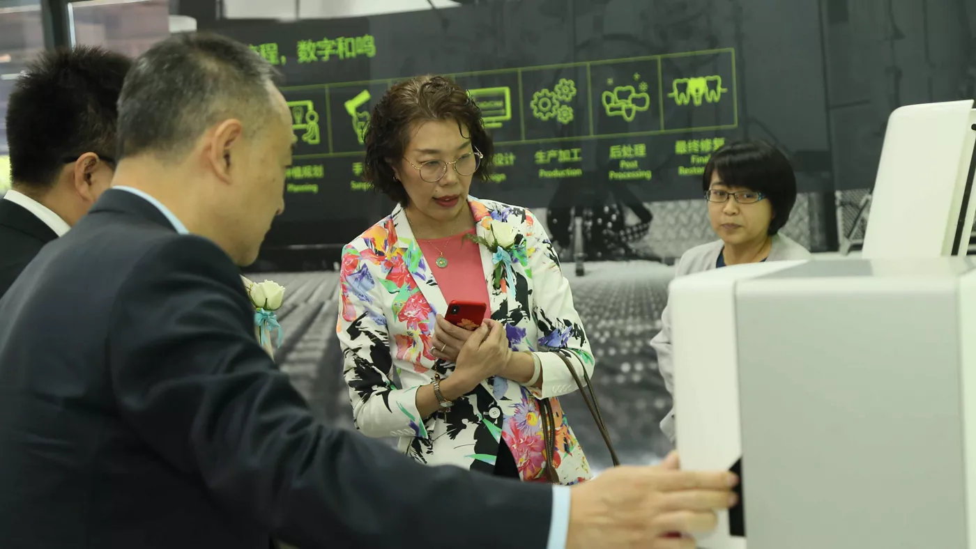 落成典礼仪式之后,嘉宾们参观了艾克康(etkon China)授权切削服务中心外围的科技创新园区,Straumann®CARES®综合的数字化解决方案展示厅,车间生产线(包含超微型精密机床等),并现场听取和观看了即将要在中国上市的数字化产品的性能介绍和操作演示。